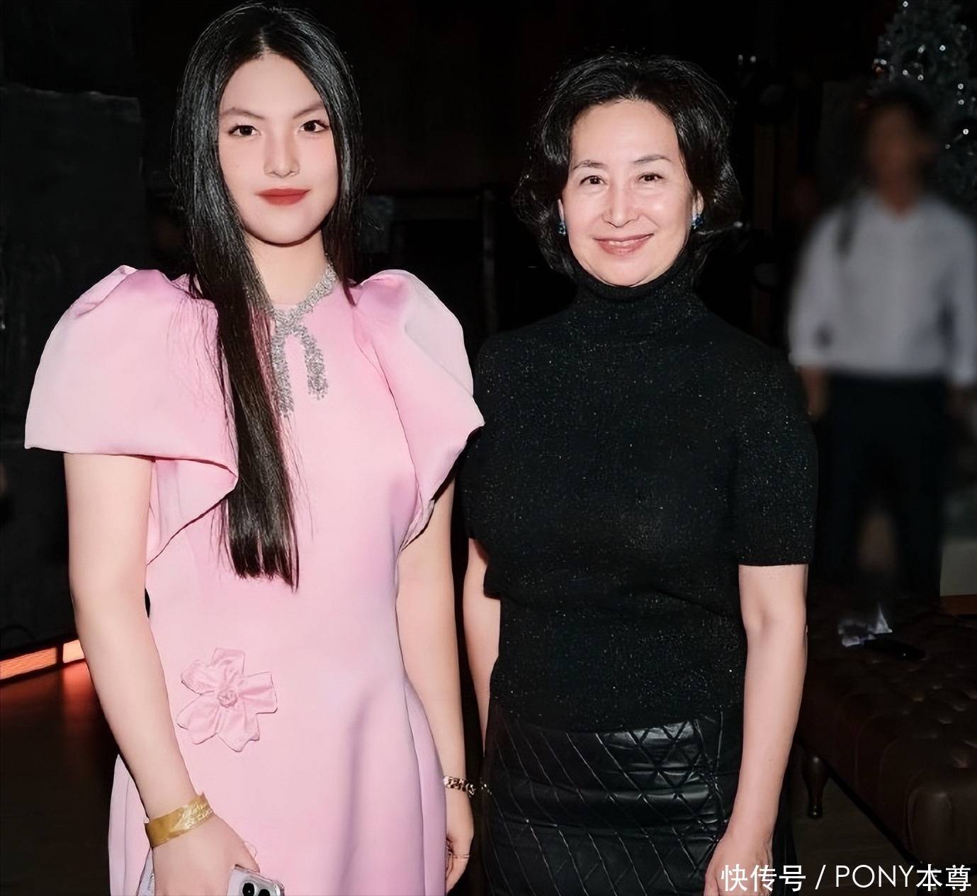 比如同框李湘的女儿王诗龄时,她换了一套黑色系穿搭,黑色修身短袖高领衫,搭配黑色皮裙!